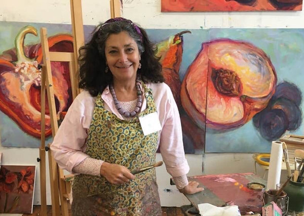 Kim Barry, painter, production potter, art educator and owner of Clay Trout Pottery, has been living in the South Coast of Massachusetts for most of her life. Her love of nature informs and inspires her paintings and clay works. For a number of years, Kim has focused on shells, flowers, fruit and vegetables as subject for her work. In these dynamic paintings, prints and drawings, this subject matter is used to reference human form, gesture, memory, and sensuality. She is also inspired to paint the coastal landscape of New England. Kim received her Associates of Fine Arts degree from Colby Sawyer College, BFA in Sculpture from Rhode Island School of Design and her MFA in Painting from the University of Massachusetts Dartmouth.
